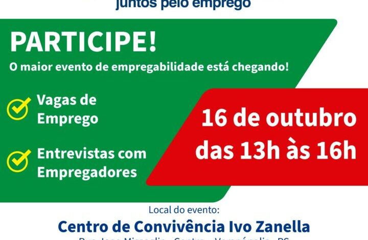 O evento Empregar RS será realizado nesta quinta-feira, 16 de outubro, no Centro de Convivência Ivo Zanella, em Veranópolis, e…