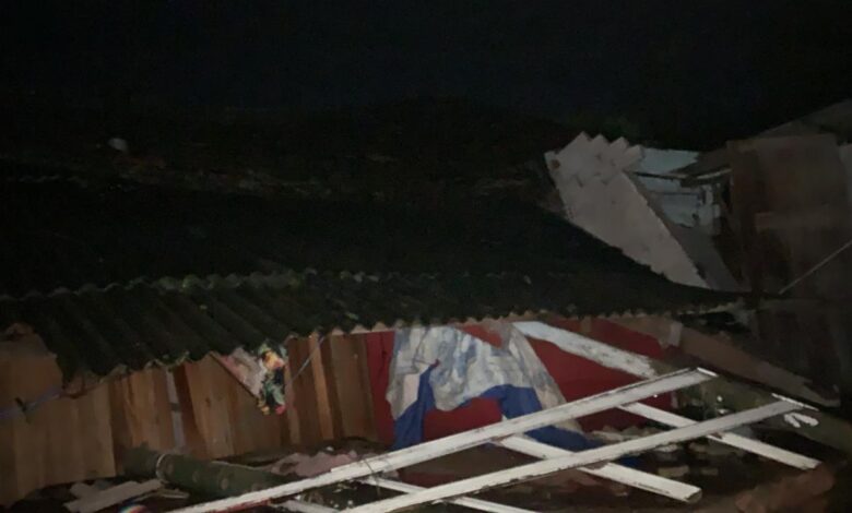 Casa de madeira sofreu colapso estrutural na noite de domingo e foi amparada por edificações vizinhas; moradoras escapam sem ferimentos…