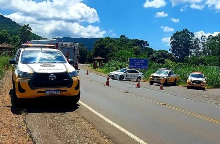 A ERS-452 foi bloqueada no quilômetro 14, nas proximidades do acesso à Rua Maximiliano Krewer (Canto Krewer), em Vale Real,…