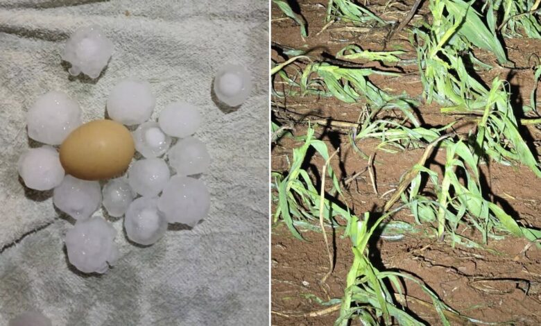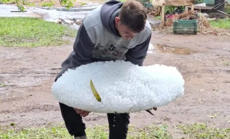 Uma pedra de granizo de tamanho impressionante se formou em um viveiro no bairro Capivarinha, em Lindolfo Collor, após a…