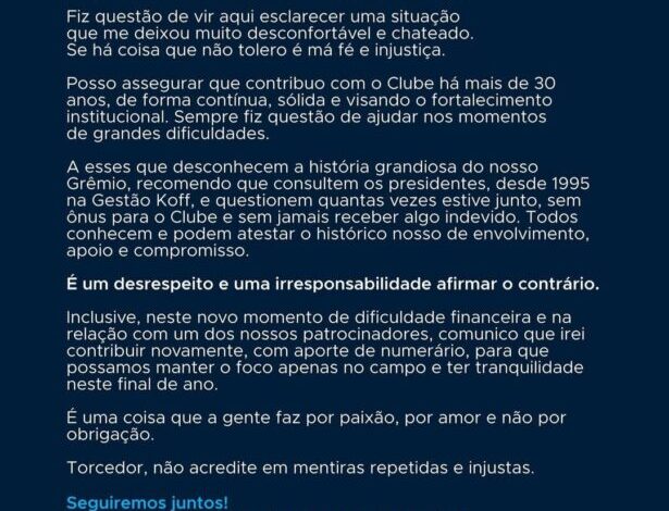 O advogado Paulo Caleffi oficializou nesta sexta-feira (26) sua volta à corrida pela presidência do Grêmio, anunciando a retomada de…