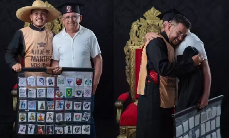 O estudante de Odontologia Matheus Camelo emocionou o pai durante ensaio de formatura em Sobral (CE) ao vestir um jaleco…
