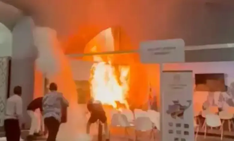 Chamas foram controladas rapidamente próximo ao estande da China; ministro Celso Sabino confirma ausência de feridos e critica preconceito contra…