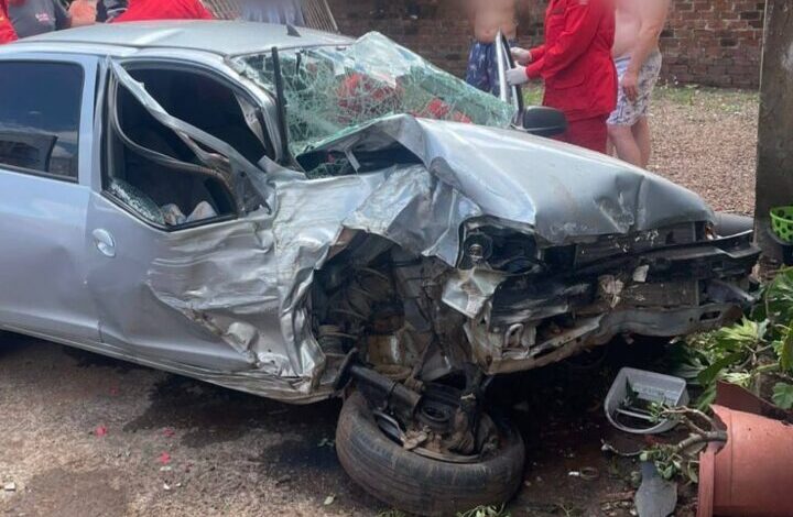 Um Chevrolet Prisma colidiu contra uma residência na Rua João Bortolini, no bairro Santa Rita, em Marau, no domingo, 2…
