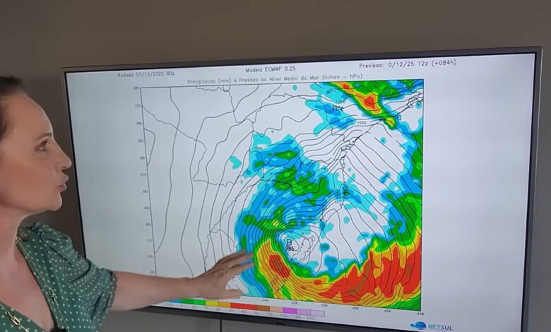 Um ciclone de intensidade rara deve se formar no início da próxima semana sobre o Rio Grande do Sul, acendendo…