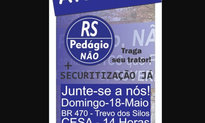 O Movimento RS Pedágio Não organiza manifestação neste domingo, 18 de maio, no Trevo dos Silos – CESA, BR 470,…