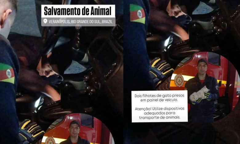 Dois filhotes de gato foram resgatados após ficarem presos no painel de um veículo na rua 24 de Maio, no…