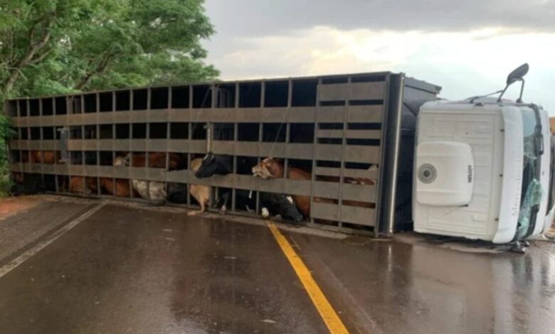 Uma colisão grave entre um caminhão que transportava gado e um Fiat Siena causou o bloqueio total da RS-233, em…