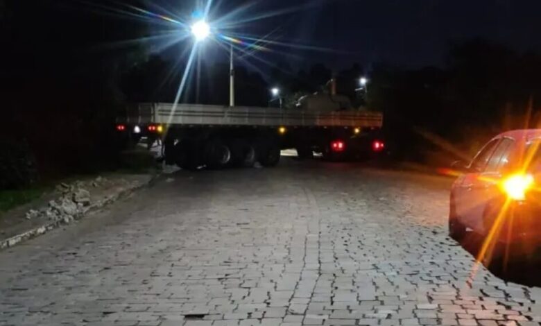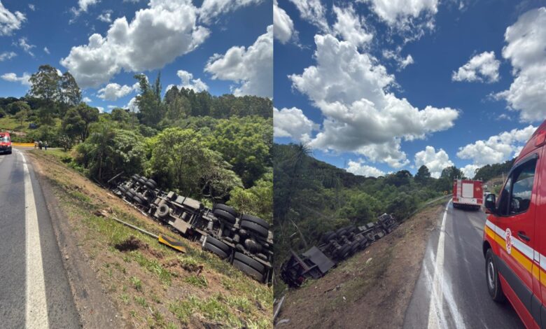 Veículo ficou atravessado na via, que serve como rota alternativa para a Serra das Antas, e trânsito permanece interrompido Um…
