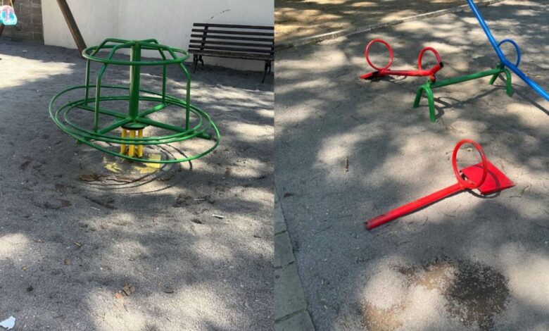 Brinquedos danificados e incêndios em lixeiras reacendem alerta sobre crimes contra o patrimônio público na cidade Brinquedos da Praça Central…